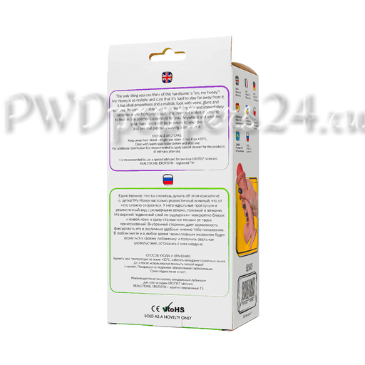 My Honey ощущается мягким снаружи и упругим внутри: подвижная «кожа» слегка смещается под пальцами, быстро принимая тепло тела. Узкая, аккуратная головка облегчает введение, а более плотный ствол дает насыщенное чувство наполненности. Рельефные вены усиливают тактильную стимуляцию при поступательных движениях.