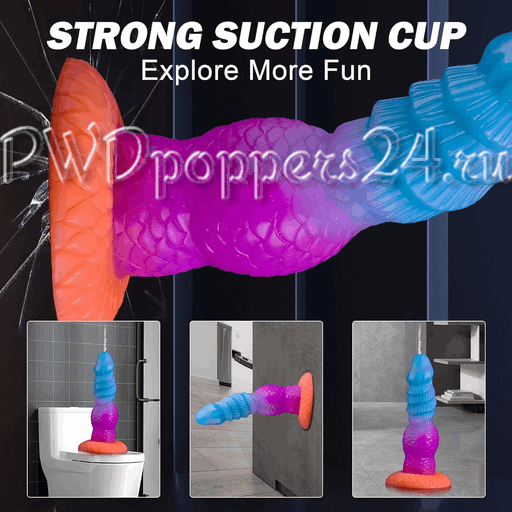 По картинке видно, что «головка» проработана отдельно и имеет реалистичные складочки и венки, а в основании — крупный узел, который создаёт тот самый эффект «наполненности», когда игрушка раздувается. Рельефные кольца вдоль ствола и чешуйчатая поверхность добавляют дополнительной текстуры — каждый миллиметр чувствуется, как будто вас ласкает полосатый пришелец. Цветовой градиент даёт красивый светящийся эффект в темноте, так что ночью эта лампа ещё и подсветит ваши шалости.