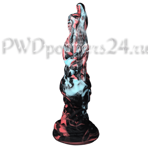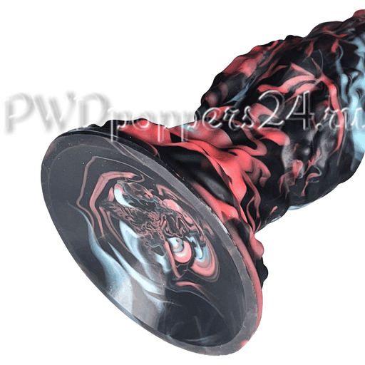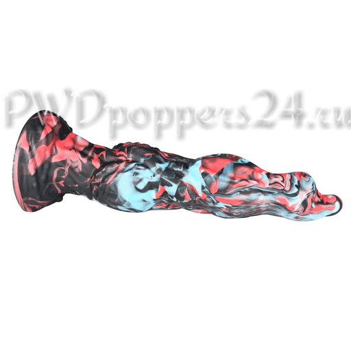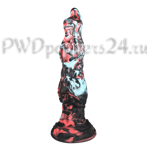 Внешне Alien McFucker поражает необычной мраморной окраской: насыщенные черные прожилки, вспышки кораллово-розового и холодные голубые пятна, словно чужая атмосфера застыла в силиконовой форме. Скалистая, волнообразная поверхность с выраженными буграми и переломами создает игру светотени — на экране спальни этот предмет выглядит так же эффектно, как главный артефакт в сюжете про космическую страсть.