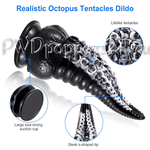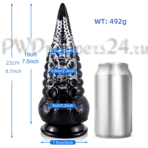 - Текстура: туловище усеяно реалистичными «щупальцами» и множеством мелких присосок, чередующихся с круглой, винтообразной рифлёвкой — каждая деталь работает как собственный маленький массажёр.