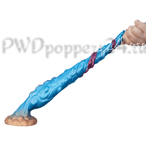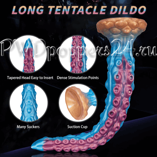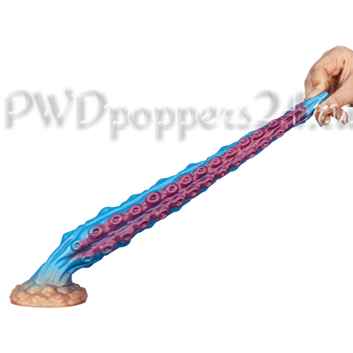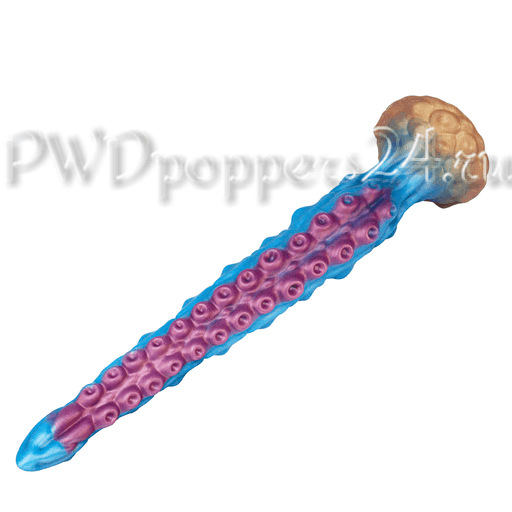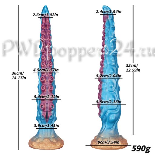 Визуально игрушка напоминает длинное щупальце: конусообразная заострённая головка облегчает ввод, постепенно расширяясь к основной части с чередующимися рядами рельефов — «точки стимулирования» и множественные присоски, которые цепляются за воображение так же уверенно, как и за язык описания. Основание оформлено в виде широкого «грибного» фланца с мощной присоской, что обеспечивает надёжную фиксацию на ровной поверхности и превращает ванну, плитку или стол в сцену для свободных экспериментов.