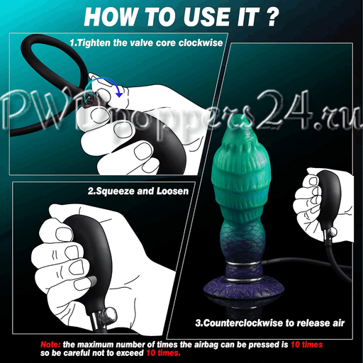 - Перед и после использования мойте тёплой водой с мягким мылом или специализированным средством для интимных аксессуаров; при наличии надувной камеры соблюдайте осторожность при погружении в воду — следуйте инструкциям производителя;